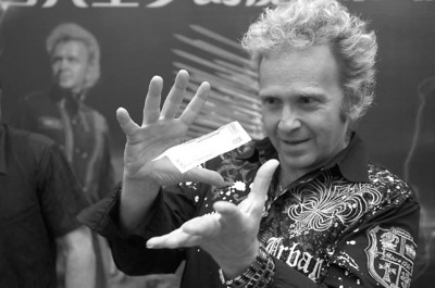 昨天下午,與哈拉利相比顯得少言寡語的蓋洛斯,卻用實(shí)際行動成了攝影、攝像機(jī)的焦點(diǎn),掉包記者緊攥在手里的硬幣,讓皮夾子憑空著火,燒毀的錢幣卻赫然出現(xiàn)在未曾開封的小包裝白糖中——蓋洛斯的每一個“節(jié)目”都頗有上春晚與劉謙一較高下的潛質(zhì)。事實(shí)上,蓋洛斯也是美國電視屏幕上家喻戶曉的明星,他的“今夜秀”連續(xù)創(chuàng)下收視佳績,早在劉謙之前,就成為真正意義上的 “魔術(shù)明星”。蓋洛斯的 “粉絲”還包括簡·方達(dá)、阿諾德·施瓦辛格、達(dá)斯汀·霍夫曼、艾迪·墨菲、羅賓·威廉姆斯、尼古拉斯·凱奇、湯姆·漢克斯等,星光璀璨,不勝枚舉。