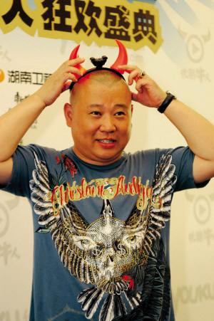 前晚,郭德綱以司儀身份出現(xiàn)在“優(yōu)酷牛人”狂歡盛典上,頭上頂著一副牛角,模樣相當(dāng)滑稽。頗為興奮的他面對(duì)媒體直奔主題:“今天好好跟你們說說官司的事!