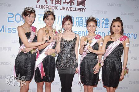中新網(wǎng)11月6日電 出爐亞姐冠軍許瑩、亞軍王,帯⒓拒娫S嘉慧及友誼小姐張加慧,昨天中午出席后冠及首飾領獎活動。港姐楊寶玲也專程回港為亞姐冠軍加冕。