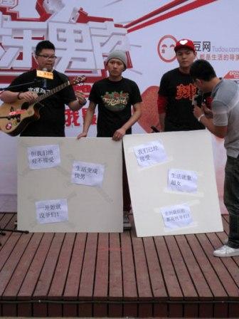 今年快男注定與眾不同,不僅“偽娘”選手備受關(guān)注,而且連“反偽娘”選手也不失風(fēng)采,上周快男土豆網(wǎng)分賽區(qū)一組特殊選手C-BLOCK組合因在比賽現(xiàn)場打出 “保護(hù)純爺們 消滅偽娘族”的參賽口號,而備受網(wǎng)友關(guān)注并被封為“反偽娘斗士”,而有關(guān)這場“偽娘”與“反偽娘”的對決,昨日舞美師在博客爆出猛料:“著姐入圍前三甲不是問題,首先是因為吸引眼球的需要,這也是湖南衛(wèi)視選秀常用手段;不僅如此,劉著也已經(jīng)秘密簽約湖南衛(wèi)視旗下長沙天娛公司”。而針對舞美師的爆料內(nèi)容,記者也從網(wǎng)上了解到該組合相關(guān)資料,首先該C-BLOCK組合來自長沙,在當(dāng)?shù)匾恢毙∮忻麣,實力不俗,去年多次參加湖南衛(wèi)視王牌節(jié)目《快樂大本營》、《成年禮》、《8090》等節(jié)目,而關(guān)于“偽娘”劉著網(wǎng)上開始有人爆出其與湖南衛(wèi)視關(guān)系甚密,這些相關(guān)信息與舞美師爆料內(nèi)容十分契合。為進(jìn)一步求證舞美師的爆料內(nèi)容,記者向湖南衛(wèi)視快男導(dǎo)演組一編導(dǎo)求證,他表示:“不要相信舞美師博客內(nèi)容,純屬造謠,快男比賽保證公平選拔”! 漪