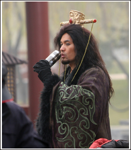與上部《鳳鳴岐山》相比,《武王伐紂》最大的調(diào)整是由林心如取代范冰冰扮演“紅顏禍水”蘇妲己,而昏庸無道的商紂王也由馬景濤變成了呂良偉。昨天當(dāng)記者趕到片場時,劇組正在布景,預(yù)備拍攝一場雨天妲己為紂王撫琴,二人展現(xiàn)恩愛的戲。雖然在劇中扮演一對親密愛侶,但拍攝之外,林心如和呂良偉卻各干各的事情,二人坐得非常遠(yuǎn),很少交流。林心如坐在亭子內(nèi)撫琴,身穿一件粉色的輕紗古裝,高挽著發(fā)髻,雖然化著精致的妝容,但總體給人的感覺卻是端莊有余而妖嬈不足。由于天寒地凍,呂良偉在黑色戲裝之外套了一件紅色的羽絨服,雖然還沒有正式開拍,但他的“煙熏妝”造型還是讓人覺得有些不舒服。金色的發(fā)冠,凌亂的頭發(fā),再加上滿臉的絡(luò)腮胡和一貫凌厲的眼神,劇組的群眾演員開玩笑說呂良偉的造型簡直酷似“人猿泰山”。