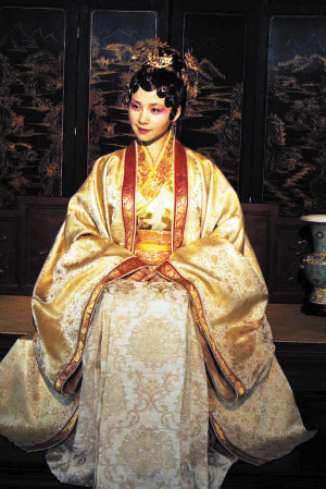 小說中的平兒:原著沒有直接描寫,只按當(dāng)時的一般丫環(huán),外穿青藍(lán)色的背心,內(nèi)穿紅色的襖子,下面穿裙子,腰圍汗巾。