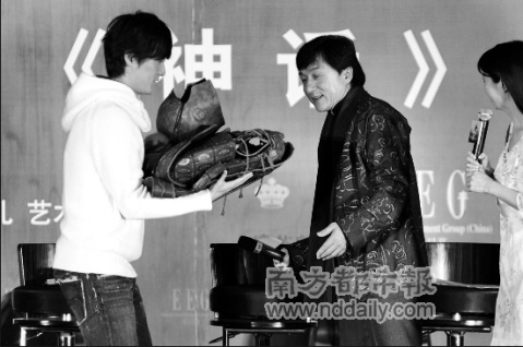 這次被成龍親自欽點扮演男一號,胡歌非常激動。現(xiàn)場他也非常落力地在大哥面前表現(xiàn),不僅與白冰合唱了一首《神話》, 還當著成龍的面表示,自己演翻版孟將軍壓力很大,但會盡量學習大哥演技“無限度地接近成龍”,說得成龍開心不已,親自將當年拍攝電影穿的一套價值百萬的盔甲送給胡歌。當年由金喜善扮演的女一號卻通過網(wǎng)絡海選最終決出。在描述自己心中理想的女主角時,唐季禮連連用了“蘭心慧質,閉月羞花……”等幾近完美的詞來形容,倒是有記者直接問到他有無打算請緋聞女友林心如來演時,他則不得不尷尬地回應“也可以吧”隨后趕緊轉移話題。