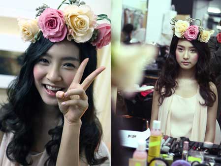 金素恩身著輕盈飄逸的粉色衣裙,頭戴花冠,羞澀可人的少女形象深深吸引了網(wǎng)民的目光。照片中的金素恩要么在忘我地拍攝,要么在化妝,要么是做好拍攝準(zhǔn)備后,認(rèn)真打量自己的形象,顯示了作為一名職業(yè)演員的敬業(yè)精神。