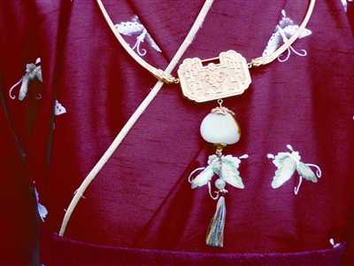 黛玉著綠,寶釵穿白,近距離打量,大概是拍了大半年了的緣故,衣服都有些舊了。寶玉胸口那塊通靈寶玉據(jù)說是很貴的,于小彤介紹說是羊脂玉,仔細打量,上面居然還刻著“通靈寶玉”四個字,頓時把我看傻了:不是應該刻“莫失莫忘,仙壽恒昌”嗎?