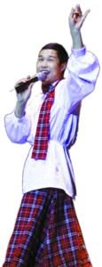 雖說是趙家班的巡演,但連舞臺(tái)上都掛著“小沈陽笑轉(zhuǎn)2009”的橫幅,場(chǎng)子里90%以上的觀眾更是沖著這位當(dāng)紅諧星而來,難怪演出開始的一個(gè)半小時(shí)之后,當(dāng)小沈陽穿著經(jīng)典的蘇格蘭裙裝蹦著走到舞臺(tái)中央時(shí),現(xiàn)場(chǎng)立即爆發(fā)出雷鳴般的掌聲,熱情的女觀眾也開始接力般一個(gè)個(gè)地往舞臺(tái)上送玫瑰花。