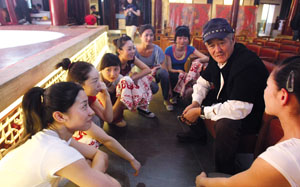 昨天,記者探班劉老根大舞臺(tái)時(shí),偶遇趙本山“視察”工作,給8位從北京新招的女舞蹈演員做“思想工作”。舞蹈演員們?cè)谂_(tái)上排練,如果不是工作人員介紹,記者絲毫看不出她們不是專業(yè)的二人轉(zhuǎn)演員。