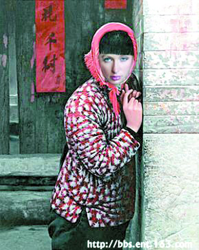 而網(wǎng)友就為她設(shè)計(jì)了很多有中國特色的服裝,其中,有一張“純樸的小希”特別引人注目。在這張作品里,希爾頓的頭發(fā)被“染”成了黑色,穿著紅底白色碎花小棉襖,頭上還裹著塊紅布,害羞地倚在家門口的墻上,表情還略帶幾分期待。此情此景,讓人情不自禁地聯(lián)想起鞏俐在《秋菊打官司》中的造型。但與“秋菊”相比,希爾頓顯然要少幾分倔強(qiáng)、多幾分嫵媚。 (王文)