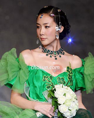 中新網(wǎng)11月27日電 據(jù)朝鮮日?qǐng)?bào)報(bào)道,26日在首爾漢南洞凱悅大酒店大舞廳舉行的安德烈-金“2007聯(lián)合國(guó)兒童基金會(huì)后援之夜”特別服裝秀上,崔智友作為模特登臺(tái)走秀,展示高雅純潔的美麗。
