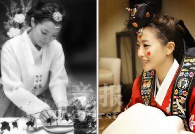 金喜善27日在自己的迷你主頁上公開的這張相片中身穿韓國傳統(tǒng)新娘禮服,臉上印著胭脂印記的金喜善滿臉都是幸福的微笑,金喜善在發(fā)布這張相片時也不忘向給自己買這身衣服的婆婆表示了謝意。