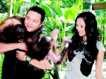結(jié)束了成都之行沒幾日,章子怡又從香港飛往馬來西亞的沙巴,探訪那里瀕臨滅絕的紅毛猩猩。在自然保護區(qū),章子怡與兩只孤兒紅毛猩猩Alan和Yoda來了一次親密接觸。章子怡透露,此次前往沙巴,她是帶著種種疑問去的:為什么沙巴只剩下幾千只紅毛猩猩?為什么他們的棲息地都不斷減少?為什么他們沒有足夠的食物?章子怡在那里呆了三天,與兩只小紅毛猩猩接觸,也逐漸了解到人類對環(huán)境的破壞導(dǎo)致了以上諸多的問題。