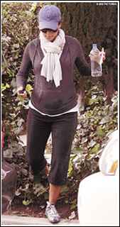 圖文:哈莉-貝瑞接受分娩訓(xùn)練 挺大肚外出運(yùn)動(dòng)