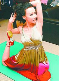 圖文:蕭薔當(dāng)眾表演瑜伽絕活 動(dòng)作優(yōu)雅曲線畢現(xiàn)