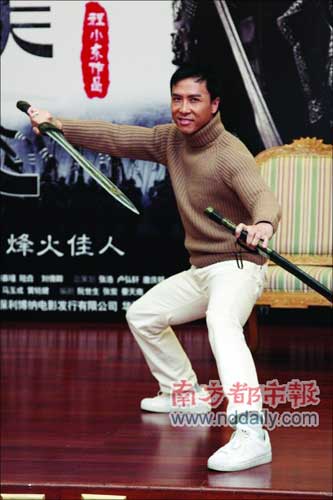 <江山美人>發(fā)布會甄子丹即場耍劍 現(xiàn)"大將之風"