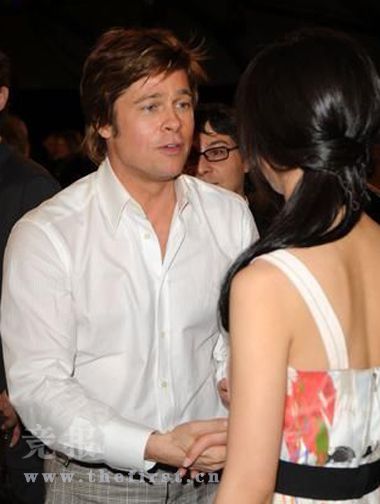 雖然沒(méi)拿到最佳女主角的殊榮,但是當(dāng)天身穿民族風(fēng)水彩畫(huà)短裙的湯唯明艷照人,并落落大方地上前與布拉德·皮特握手交談。