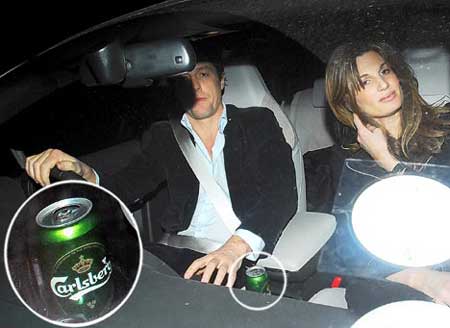 據(jù)英國(guó)每日郵報(bào)報(bào)道,休·格蘭特與富婆女友Jemima Khan的感情分分合合,最近又悄悄相約見面,駕車出游。不過在休·格蘭特的右手邊,還有一罐已經(jīng)打開的啤酒,而休·格蘭特也面色微紅,被疑酒后駕車。