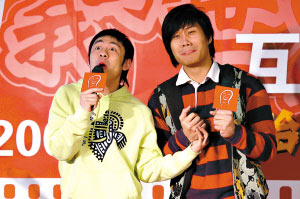 前天,由好萊塢著名女制片人羅燕導(dǎo)演的國內(nèi)首部電玩動作喜劇電影《哈!哈!哈!》在北京舉行啟動儀式,該片主演之一后舍男生(右圖)搞笑亮相。羅燕透露,該片初步確定上映的日期為5月上旬。