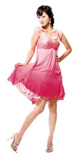 文根英拍廣告成"粉紅女郎" 穿裙裝俏皮可愛(組圖)