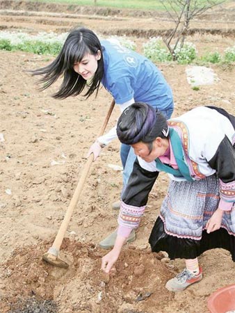 中新網(wǎng)4月8日電 周慧敏(Vivian)早前以“樂施會中國發(fā)展基金”樂施大使身分,到云南祿勸縣農(nóng)村展開首個內(nèi)地扶貧之旅,探訪當(dāng)?shù)卮迕窦绑w驗他們的生活情況,一起吃農(nóng)家飯、學(xué)習(xí)蠟染及繡花、耕種等。周慧敏希望將來有機會與男友倪震結(jié)伴探訪,一同感受,但首要條件是找到可靠的人照顧家中愛貓。