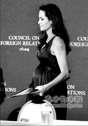 美國時(shí)間8日,盛傳懷雙胞胎的安吉莉娜·茱莉現(xiàn)身華盛頓,參加一個(gè)關(guān)于“沖突中的伊拉克、教育及兒童”的討論會(huì)。雖然她和配偶皮特一直沒有承認(rèn)再次懷孕,但是茱莉高高隆起的腹部使懷孕一事已毋庸置疑。