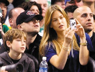 圖文:萊昂納多攜名模女友看NBA