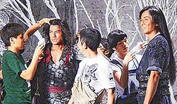 中新網(wǎng)4月22日電 電影《風(fēng)云II》在曼谷試拍2周,昨正式開鏡,鄭伊健(飾聶風(fēng))、郭富城(飾步驚云)一開打就打破頭,只見聶風(fēng)拿刀朝步驚云的頭砍去,步驚云來不及閃,刀便敲上他的腦門,當(dāng)下郭富城捂住左額頭痛苦不已,雖沒血流如注,但他額頭已腫如乒乓球大,他搞笑說:“沒關(guān)系啦,就算我為迎接奧運(yùn),額頭多個(gè)乒乓球!