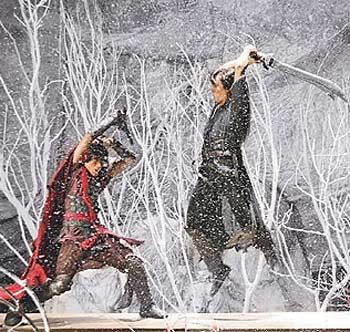 為了遷就計(jì)算機(jī)特效,2位主角有許多臨時(shí)設(shè)計(jì)的對(duì)打戲,昨就是臨時(shí)加了“砍頭”戲分,沒有事前套招才造成郭富城掛彩。