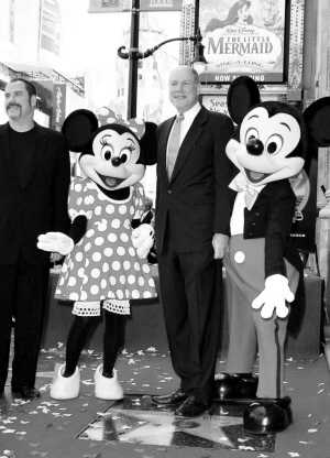 日前,迪斯尼前主席邁克爾·埃斯納留名好萊塢星光大道。在授星儀式上,迪斯尼的經(jīng)典動(dòng)畫(huà)人物米老鼠前來(lái)助陣,為典禮增添了不少活潑歡快的氣氛。