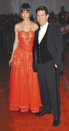圖文:凱蒂火紅長裙亮相 阿湯哥成了"小矮子"
