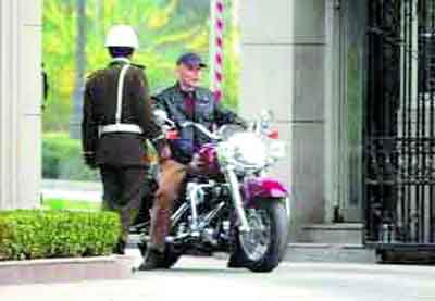 不久前葛優(yōu)騎摩托兜風(fēng).