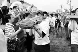 “世界華人都是一家人,我早就想來災(zāi)區(qū)了,今天都來晚了,但我會盡力去支援救助災(zāi)區(qū)群眾的!鼻疤煜挛2時(shí),中國紅十字會總會和李連杰帶著災(zāi)區(qū)群眾最需要的食品、藥品、帳篷等來到地震重災(zāi)區(qū)什邡鎣華鎮(zhèn),將物資及時(shí)送到了當(dāng)?shù)卣种。?dāng)日的物資一共重達(dá)50噸,整整裝載了7大卡車。李連杰表示,哪里最需要物資,壹基金將會把物資送到哪里。