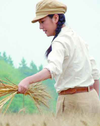真的女文工團員為愛奮斗一生的傳奇。在拍攝現(xiàn)場,趙薇在高溫下割麥子。