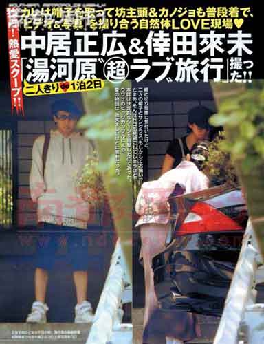 5月30日發(fā)售的《Friday》刊登了一組幸田來未和中居正廣共游溫泉勝地的照片。自2007年夏兩人傳緋聞以來,這是媒體第一次拍到照片。幸田來未(25歲)和中居正廣(35歲),相差10歲的戀情堂而皇之地登上刊頭。