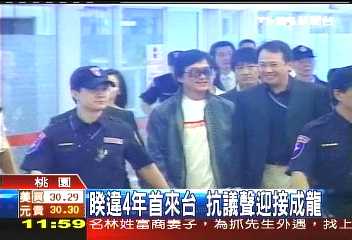 報(bào)道說,在現(xiàn)場有桃園縣議員齊聲高呼:“滾蛋!滾蛋!”也有民眾支持偶像:“歡迎成龍!歡迎成龍!”