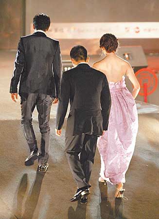 中新網(wǎng)7月9日電 電影《赤壁》昨晚在臺北新店碧潭斥資千萬元(新臺幣 下同)舉行戶外首映禮,吸引約3千名民眾圍觀,3名演員金城武、林志玲、張震帶著作品回到臺灣心情很high,一向惜字如金的金城武致詞時特別以“鄉(xiāng)親父老”打動觀眾,林志玲身著夏姿訂制粉紅色禮服優(yōu)雅動人,但因為水上星光大道剛下過雨路滑,她只穿上1吋半的高跟鞋,當她走上坡度約45度的紅地毯時,還出現(xiàn)使不上力的狀況,只好用手拖住身后的梁朝偉才順利爬上斜坡。