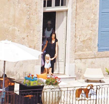 茱莉帶女兒希洛在家門前玩耍,被媒體遠距離偷拍。