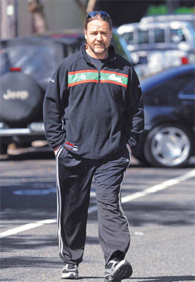 羅素·克洛前年買(mǎi)下澳洲職業(yè)橄欖球隊(duì)當(dāng)老板,更是變本加厲不修邊幅,身材往橫向發(fā)展。盡管他片約不斷,但多半不用秀肌肉,等到上戲時(shí),才發(fā)現(xiàn)戲服太緊。