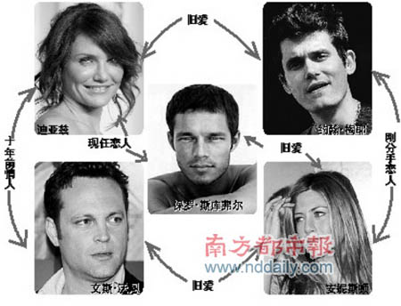 卡梅隆·迪亞茲和珍妮佛·安妮斯頓雖不是姐妹淘,但卻有驚人的相似點(diǎn)。兩人不僅都擁有金發(fā)碧眼,而且連對(duì)男友的喜好都相當(dāng)相似。兩人都和約翰·梅耶(JohnMayer)、保羅·斯庫(kù)弗爾、文斯·沃恩(VinceVaughn)等人譜出一段戀情。(記者 張麟)