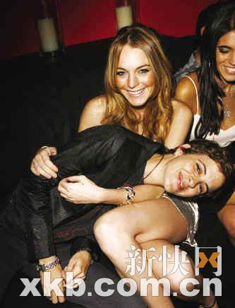 女星林賽·洛翰與同性女友薩曼莎·羅森(Samantha Ronson)現身第60屆艾美獎慶功派對。薩曼莎親昵地倒在林賽的腿上,就像一個撒嬌的小孩。