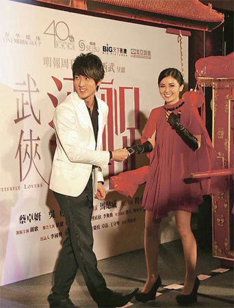 中新網(wǎng)10月7日電 馬楚成新片《劍蝶》前晚在香港舉行首映禮,主演阿Sa身穿鮮紅色連身裙,儼如新娘子般坐花轎出場(chǎng),由手持長(zhǎng)劍的吳尊“踢轎門(mén)”,引得現(xiàn)場(chǎng)粉絲尖叫連連。吳尊坦言被阿Sa的“新娘”裝迷倒,大贊雍容華貴,女人味十足。