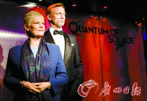 10月15日,倫敦,丹尼爾·克雷格版“邦德”蠟像、老牌女星戴·朱迪·丹奇蠟像進(jìn)駐杜莎夫人蠟像館。“邦德”西裝革履瀟灑帥氣,英俊有型電力超強(qiáng),宛如真人在場(chǎng)。