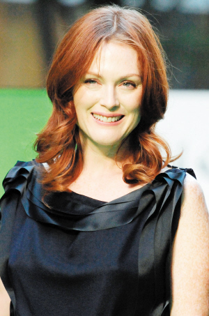 本屆東京電影節(jié)上,《盲流感》的女主角朱麗安·摩爾是唯一的好萊塢星光。本次的東京之行,朱麗安·摩爾鄭重其事,她在開(kāi)幕式上以黑色禮服出場(chǎng),在昨天舉行的新聞發(fā)布會(huì)上則以桃紅色的低胸晚裝和一套短款的碎花小旗袍亮相!睹ち鞲小繁臼且徊砍林氐碾娪埃禧惏矃s習(xí)慣在現(xiàn)場(chǎng)報(bào)以俏皮的微笑。一頭紅發(fā)的朱麗安·摩爾在片中那些智慧的笑容、堅(jiān)毅的神情,讓我們不得不相信那就是生活中的她,而她卻表示:“不管是快樂(lè)還是不安,那些都是我!