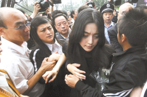 由于沒有對明星設(shè)置特殊通道,范冰、趙薇等明星在進入芙蓉大廳時,尷尬地被群眾圍困。