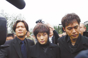 在走過紅地毯后,謝家人便被安排進了休息室。直到下午1時30分左右,接受演藝界人士的悼念時,才走進現(xiàn)場。徐大雯看上去有些輕微的浮腫,眼睛紅紅的,卻表現(xiàn)得很堅強,直到被濮存昕等人擁抱時,才忍不住哭出聲音。