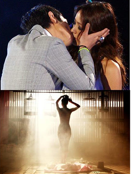 李孝利和Bigbang成員T.O.P的接吻場(chǎng)景和電影《美人圖》中的場(chǎng)景。
