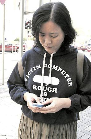 面容憔悴的藍(lán)潔瑛不斷把玩手機(jī)。圖片均來自香港《明報(bào)》