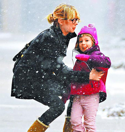 中新網(wǎng)12月21日電 已故男星希斯·萊杰(Heath Ledger)的女兒瑪?shù)龠_(dá),和母親米歇爾·威廉姆斯相依為命。年僅3歲的她日前和母親上沙龍美甲,回家路上遇到大風(fēng)雪,瑪?shù)龠_(dá)很興奮,在雪地上跑給母親追。
