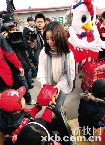 近日,作為愛心大使的林心如親赴四川地震災(zāi)區(qū),將一份份包括牛奶和面包的愛心營養(yǎng)餐包親手發(fā)給四川綿竹板房社區(qū)內(nèi)清平學(xué)校的310名小學(xué)生。
