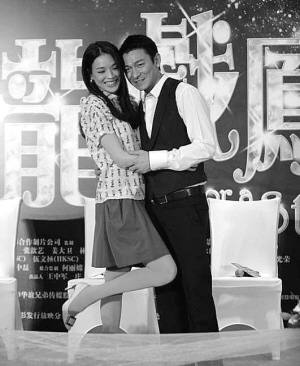 在《游龍戲鳳》中,劉德華飾演城中富豪,舒淇變身賭場發(fā)牌員,兩人演繹了一段浪漫情緣。這也是他們繼劉偉強(qiáng)的《衛(wèi)斯理之藍(lán)血人》后再度攜手,只不過,《藍(lán)血人》中兩人毫無感情瓜葛,但在《游龍戲鳳》中卻是專門談情說愛。昨日劉德華的右手無名指上戴著一枚戒指,和舒淇左手上的明顯是一對。對此,華仔解釋說戒指“只是片中道具”。娛樂記者們不肯輕易放過他,有人大聲問:“如果舒淇嫁給你,你會(huì)答應(yīng)嗎?”劉德華隨即把難題拋給了舒淇:“你不知道嗎?我向她求過兩次婚呢,可都被拒絕了!辈贿^舒淇卻眼含深情地表白道:“其實(shí)他是我們所有女人心目中最好的男人!
