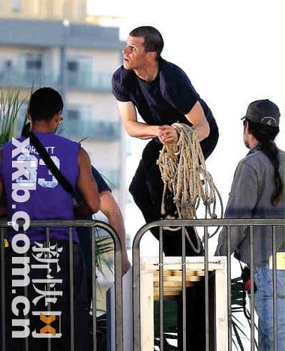 日前,溫特沃斯·米勒和他的特技替身在加州的瑪麗安德爾灣為劇集《越獄》拍攝一幕動作戲場景。特技替身和米帥一樣的發(fā)型、一樣的穿著,不湊近看,很難發(fā)現(xiàn)破綻。